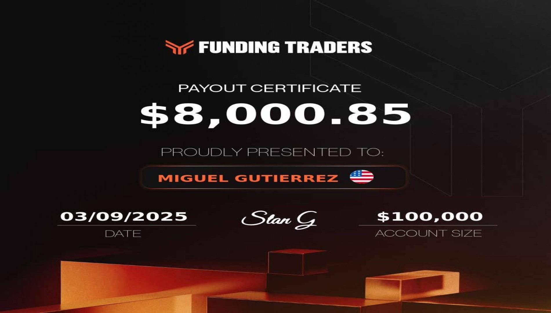 You're choosing a partner who knows how to win. Our proven track record speaks for our ability to lead you to success.Our main goal is your success. We work hard to ensure that each funded account we handle is a success story.